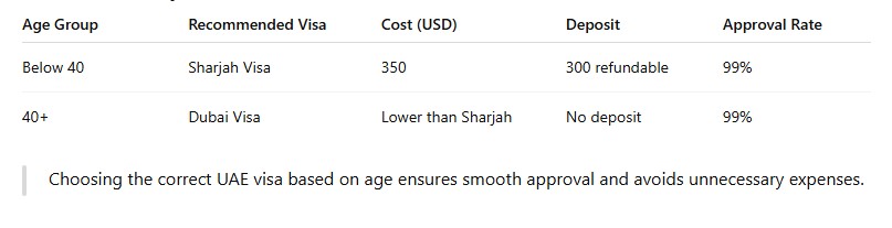 A2: The Sharjah tourist visa is recommended for travelers under 40 due to a higher approval rate.